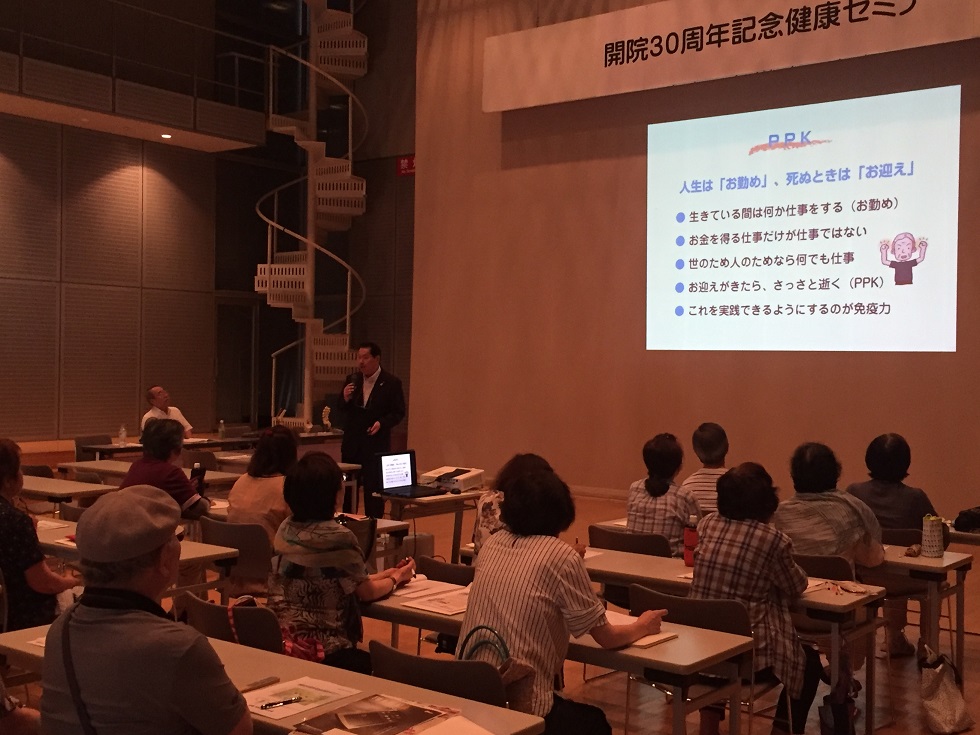 開院30周年記念健康セミナー 現代医学の新常識 (いつまでも健康で暮らしていくには) 日時:平成30年7月29日(日) 会場:名取市文化会館 宮城県内各市町村より参加していただきましたことを、心より感謝申し上げます。 皆様のおかげをもちまして無事に開催することができました。ありがとうございました。